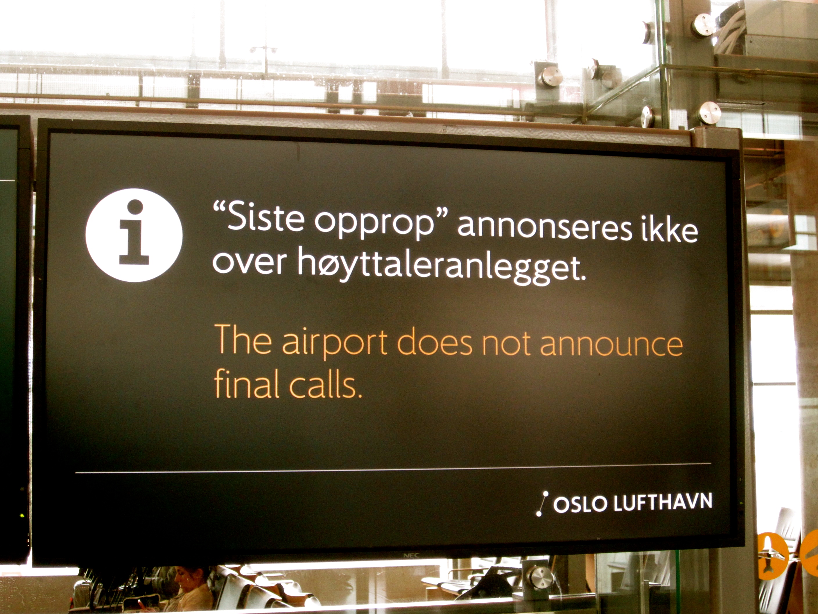 After cleaning an exploded pen out of my bag and accepting that I wouldn’t be leaving Norway for another four hours, I went to find food.  A small sandwich costs about $25 U.S. dollars in the Oslo Airport, so on principle I bought a $12 beer and drank that for dinner instead.