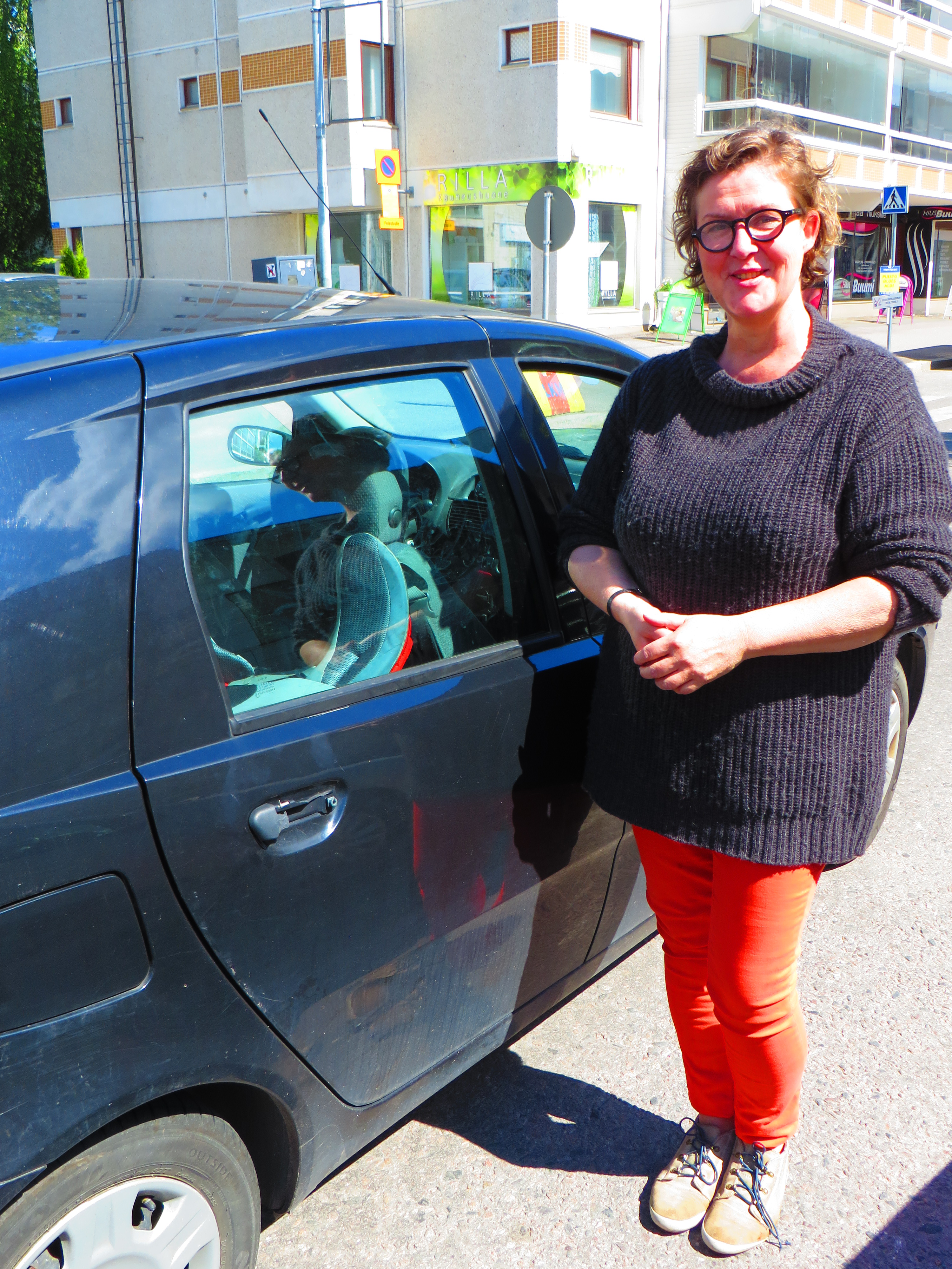 “Moi.” Not a question. It belonged to a well-built man in orange crocs, no doubt the father of the house, trailed by a small white dog.