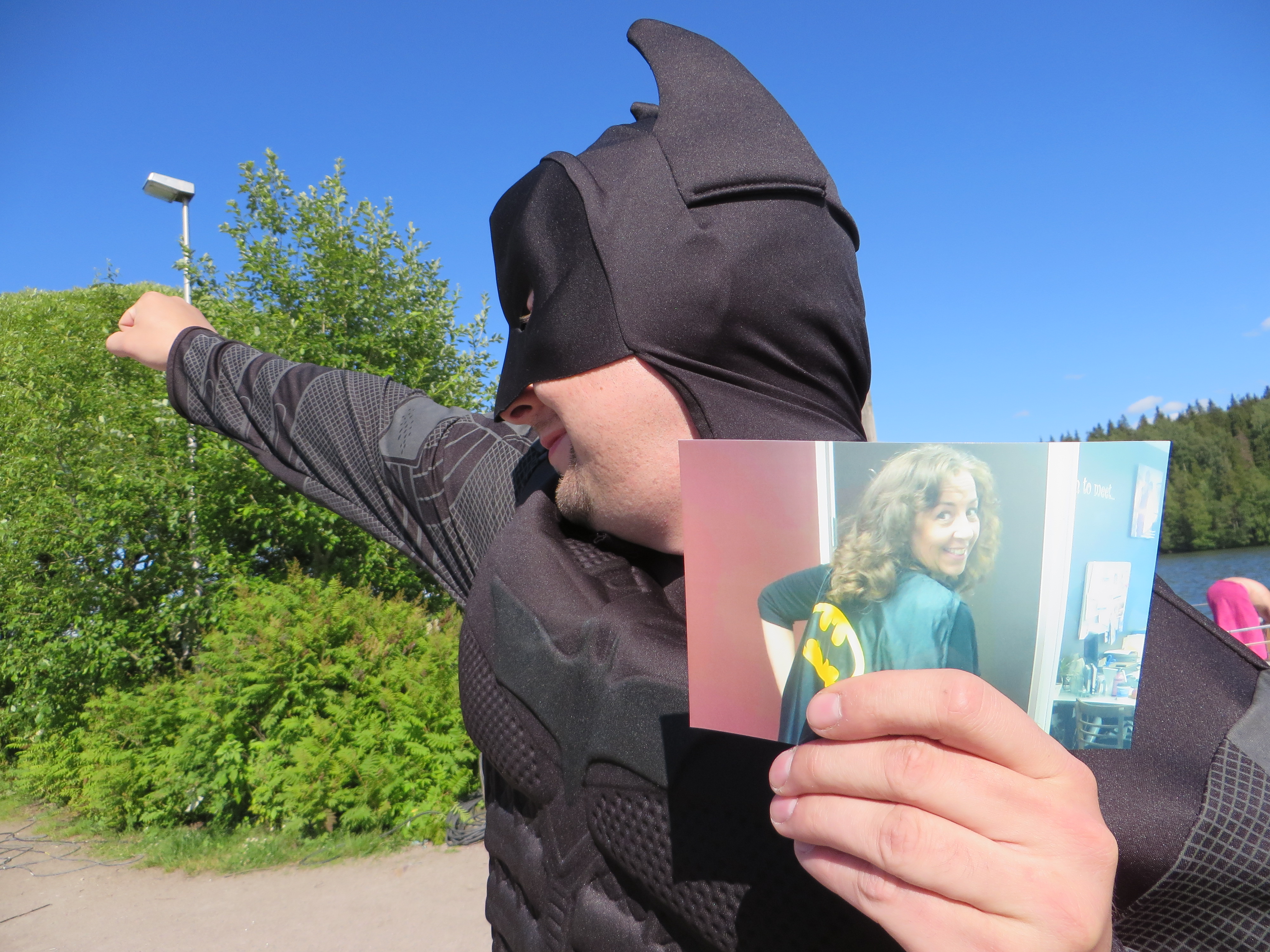 Patricia is the Executive Director of Bay Area Make-A-Wish, and one of the prime orchestrators of the Batkid Phenomenon that swept the world last November. More importantly she is an invaluable part of my family, life, and heart. Our bond is incredible, and grew even stronger when she invited me to live with her for the past 6 months as I prepared for my journey – without her, I would not be here. So of course when I saw Batman at Camping Messila, I had to stalk him until I got a photo. The resulting adventure was wonderful and ridiculous, which is quite fitting for Patricia because we make each other’s lives wonderful and ridiculous. Just ask the opossum in the dustpan or the skeleton in the refrigerator.