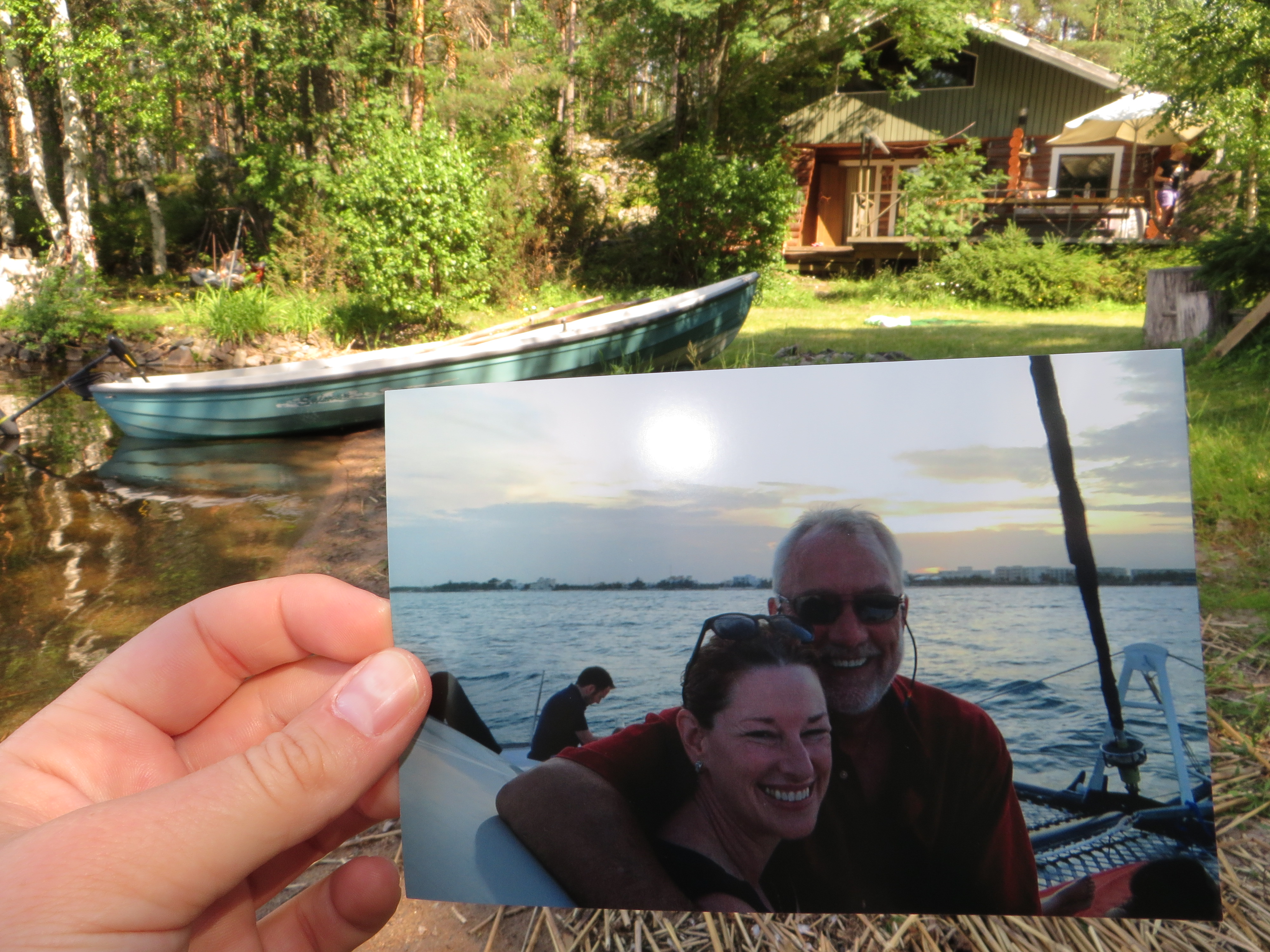 Just before I left New York, Uncle Alan came to visit me at my family’s Camp on the Sacandaga Lake. He brought journals from his travels when he was my age. When he sent over a picture of him and Aunt Kate, he said “make sure you take it near water! She’s a water girl.” He didn’t really have to tell me. Alan and Kate’s love for rhodesian ridgebacks, main coon cats, and family is rivaled only by their love of beautiful places. They have been coming up to Camp for as long as I remember, where we’d sit out on the deck with a cup of milk with ice cubes in it (no milk is too cold for Uncle Alan), and he would beat me at backgammon, again. Of course they showed up at Joni and Saana’s lake house on Pirttisaari. You have to row a boat out to the island just to get there.