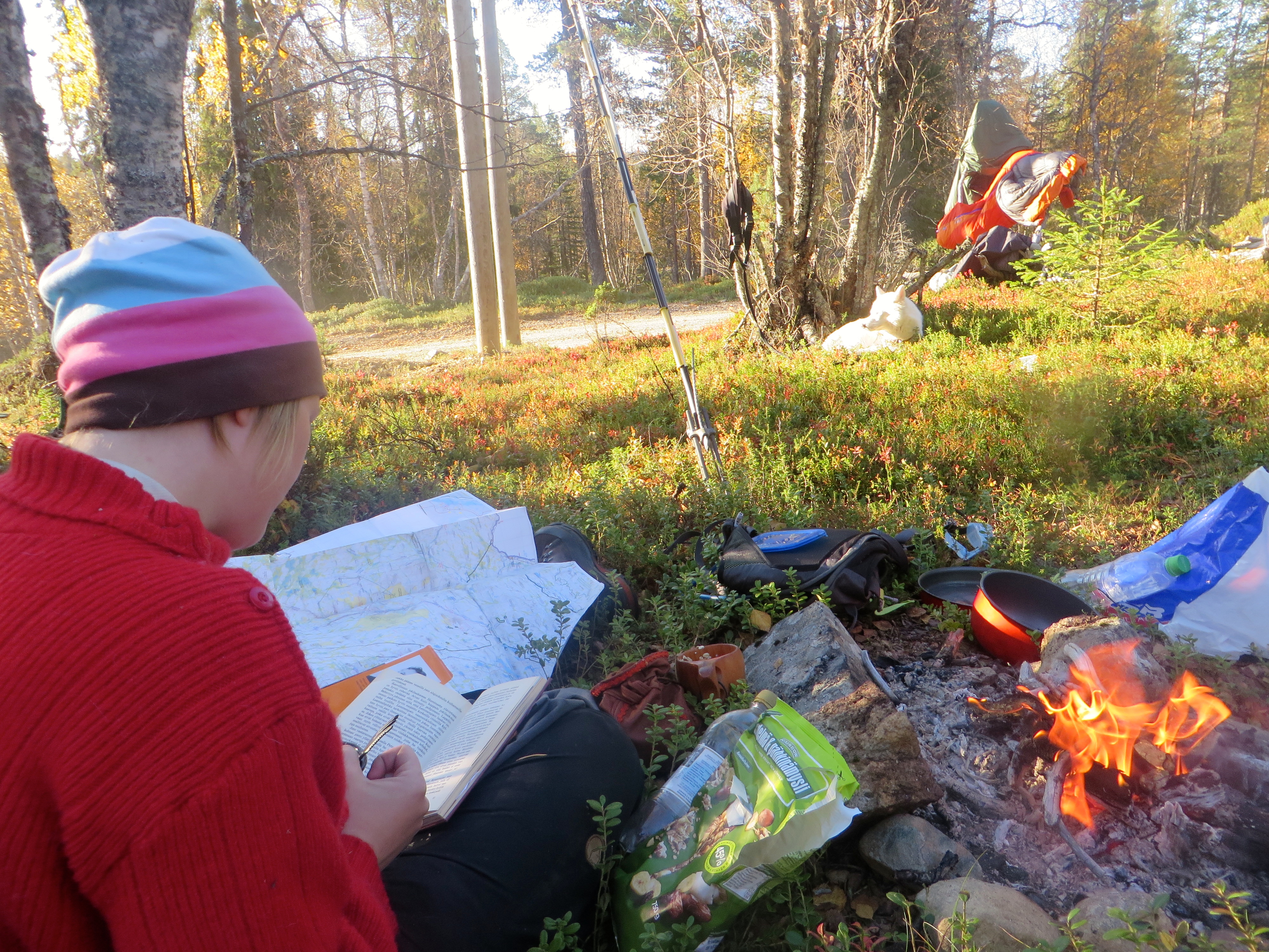 Jim is the director of LifeSchool’s GoAdventure, an outdoor education company that is deliberate and created with a lot of care and love. He isn’t really a boss so much as a leader, because he operates with zero ego. He works hard to recognize and call upon the strengths of those he employs, and with all of those skills combined creates a much more powerful program. I adore his zest for life, passion for what he does, and sense of humor, and I love working for and with him as a boss and a friend. GoAdventure has a whole resource guide dedicated to helping people educate themselves on wilderness skills, so naturally Jim popped up the day we crossed the Inari-Kittila road and entered the Lemmenjoki backcountry, compass at the ready. By this point Annukka and I had gotten lost enough times to know what we were doing, and we rocked it the rest of the way to Lemmenjoki. 🙂