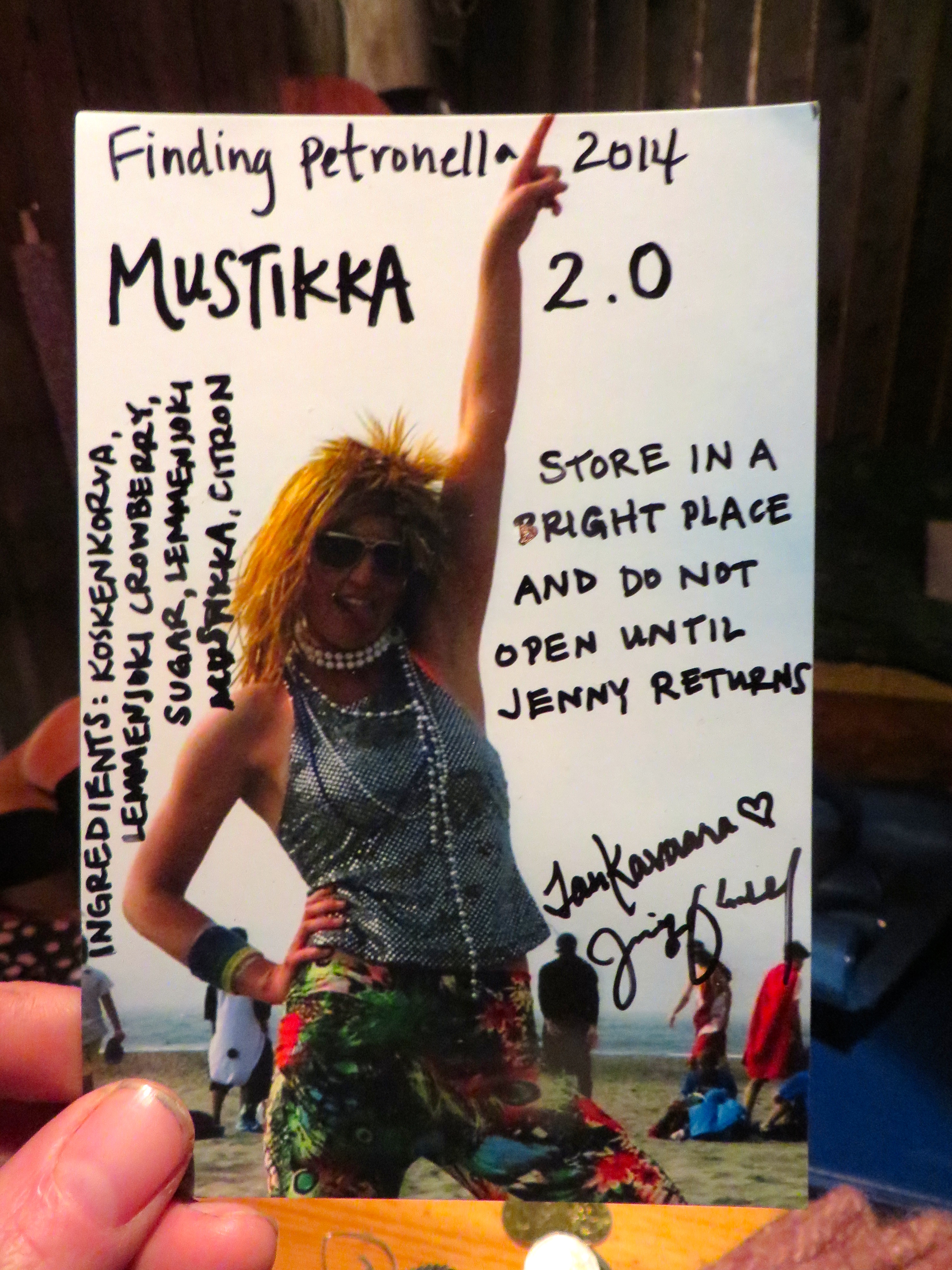 B-Ray’s creativity astounds me! She spends her time at work innovating systems and that create positive change and interesting places in Palo Alto, and she spends the rest of her time coming up with new costumes, themes, puns, team names, cheers, song lyrics, games, ideas. Sometimes I think it’s not so much the things themselves as the sheer joy she gets from creating them and sharing them with her community. Somewhere on a shelf in a pub in Tankavaara, Lapland, B-Ray sits discoing over all the patrons. She guards a bottle of Mustikka 2.0: a drink I dreamt up for my friends at Tankavaara. Made from Koskenkorva vodka, sugar, lemon, and berries I picked straight from Lemmenjoki, it’s not just a bottle – it’s also a promise. B-Ray will sit on that shelf in all her glory until I return and we take it down and drink it together.